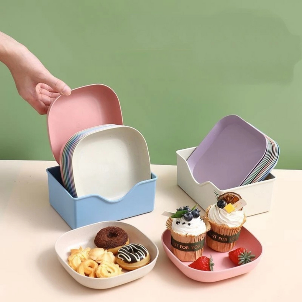 Conjunto 10 Pratos + Escorredor de Plástico Reutilizáveis